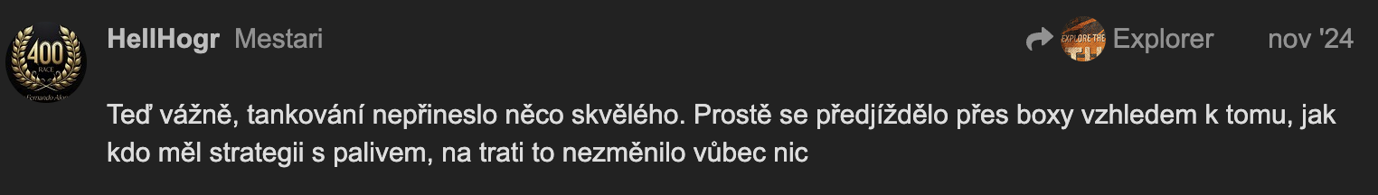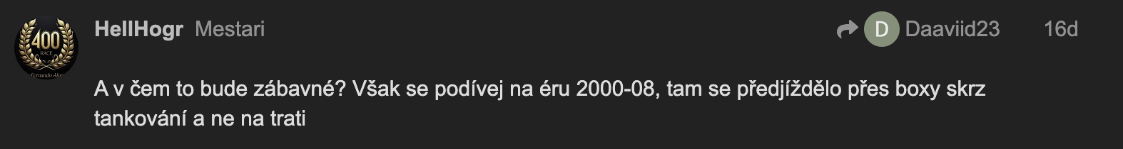 Brnenský krivák sa opäť ukázal. Keby Alonso povedal, že chce čisté elektromotory, tak BadJohnieGroh, Michal Piškotek aj brainlesssheep tu obhajujú elektro.
