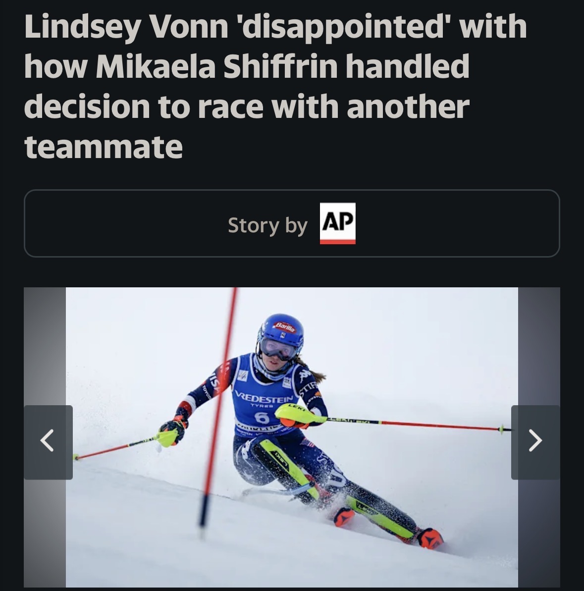 Mikaela ve St. Moritz myslím taky vyhrala sjezd (2023). A týden předtím slalom - dvě protichudné disciplíny dalo by se říct - svatej grál lyžaře. Akorát od toho pádu v obřáku přestala nějak sjezdy jezdit, což je škoda…