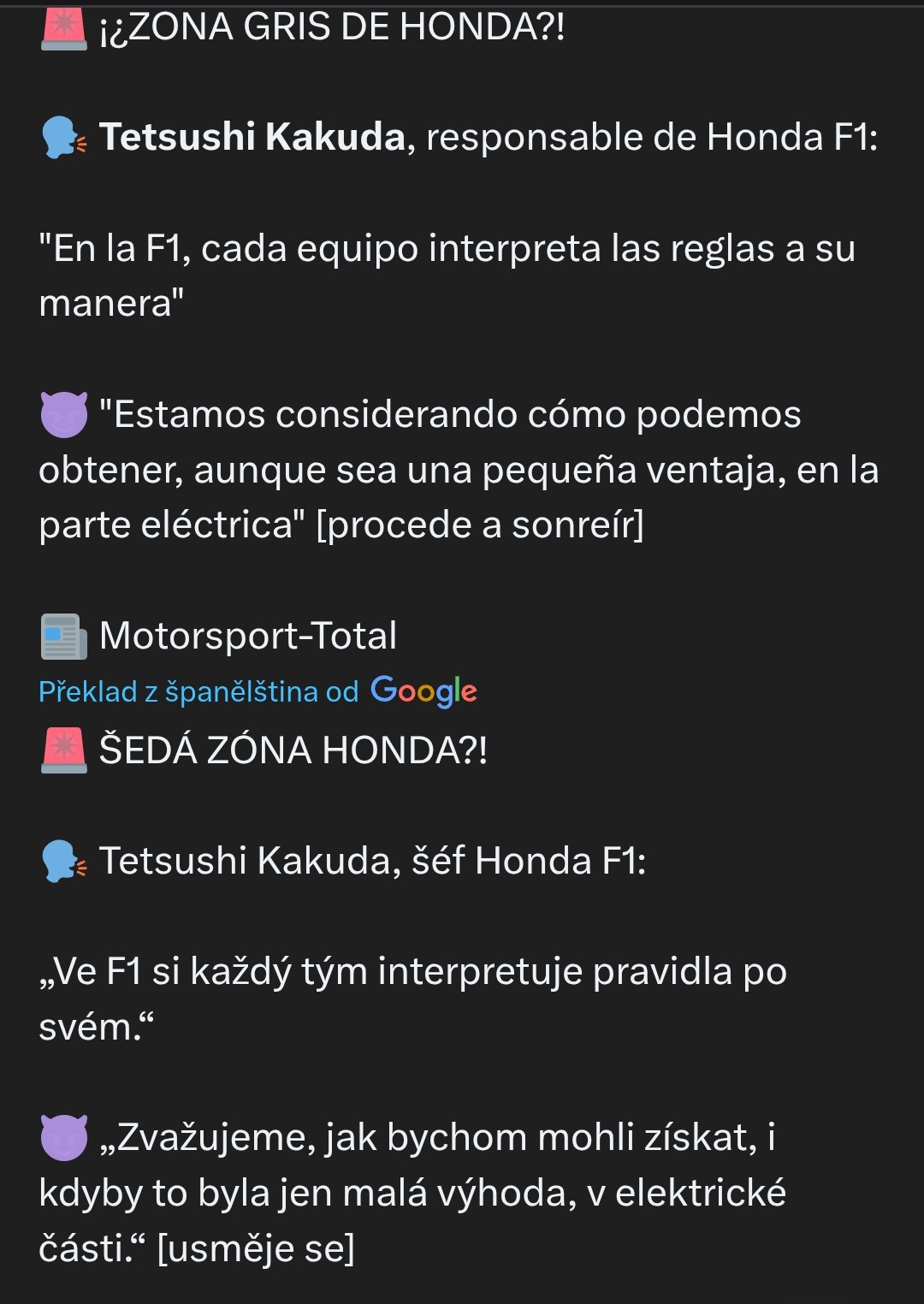 Je to v pořádku. Měly by tak udělat všechny týmy a poslat celou FIA i s kyselinami a syntetickým palivem do pjdele.
