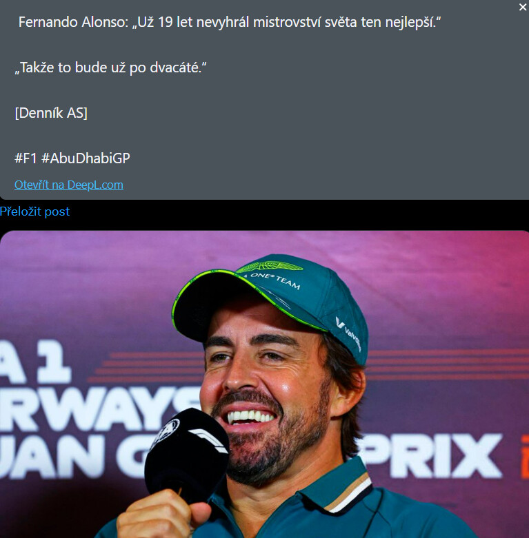 Vysvetlil som ti preco - v tvojich faktoch mas samozrejme pravdu, ale nesuhlasim s tvojim podanim, ktore minimalne pre mna navadza dojem, ze Piastri je ten, kto nieco kapitalne “zvrzal.” Ono to do istej miery sedi, stratit taky velky naskok je dokaz toho, ze neodviedol dobru robotu. Ale uplne rovnako zlyhal aj Norris - ten sice nezlyhal v tom, ze by prehajdakal obrovsky naskok, ale zlyhal v tom, ze najma prvu polovicu sezony jazdil tazko pod moznostami auta. To je ekvivalentne zlyhanie k tomu, co sa stalo Piastrimu.