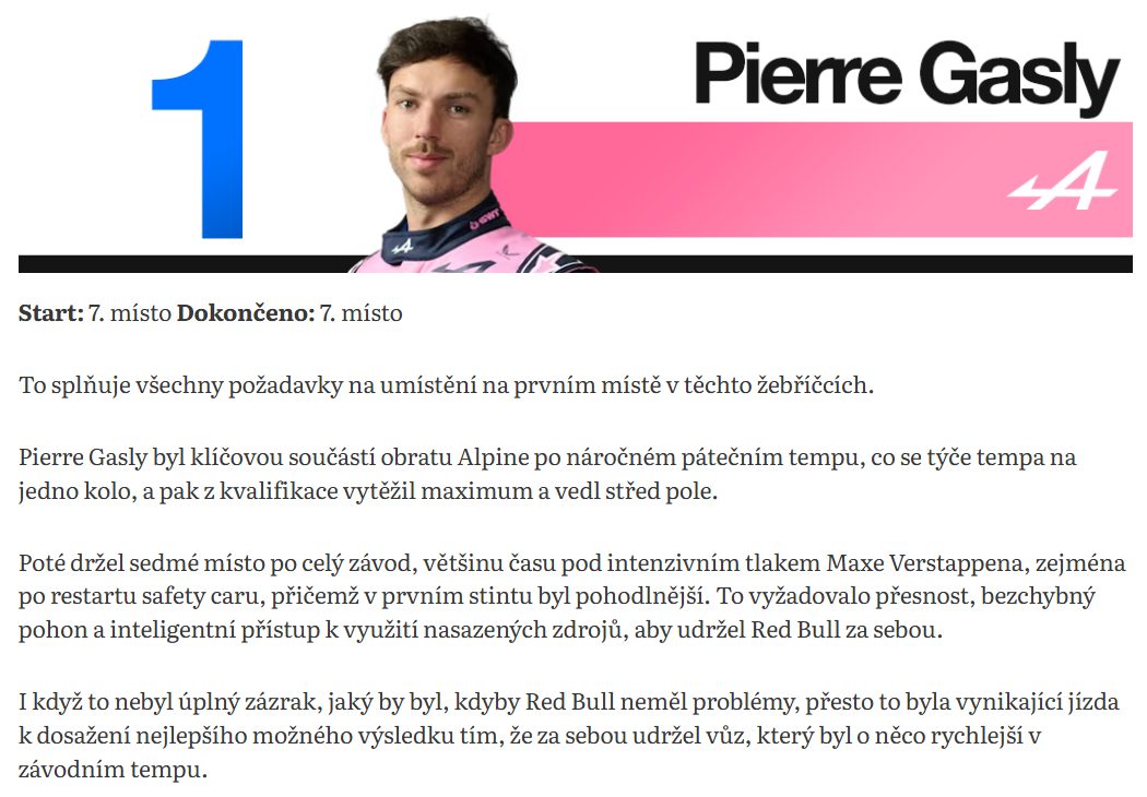 co má hodnocení the race z Japonska spoelčného s tím, že sis vylhal články a že si neměl v pravdu prakticky v ničem co si tvrdil okolo motorů a AM?