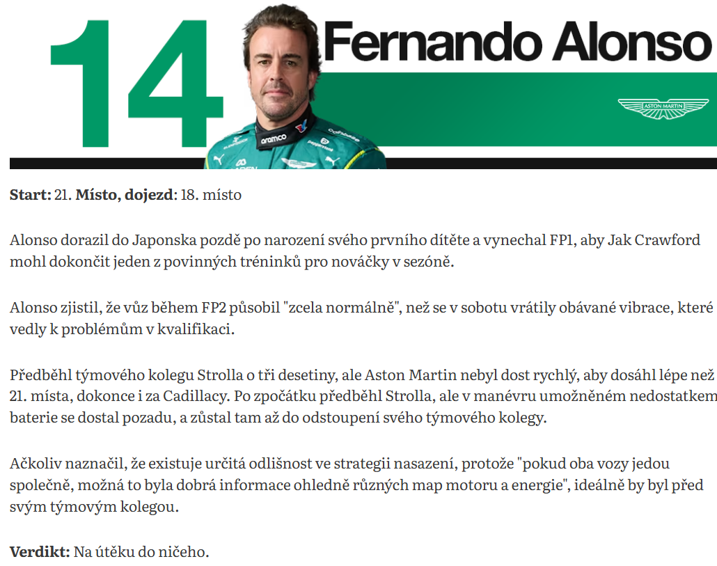 To cele hra Fernandovi do karat v tom slova zmysle, ze buduci rok ho podpisu. Iny top pilot to Astonu urcite tento rok nepodpise.