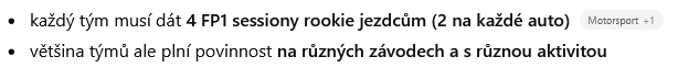 Podle mě zatím nemáme dostatečně zmapovanou výkonnost některých týmů, a to včetně Red Bullu. Hadjar měl dost smůlu a Max se myslím za chvíli rozhodně adaptuje víc, než zatím předvádí. Pak se uvidí. Haas se ukazuje dobře, ale ještě bych se závěry počkala.