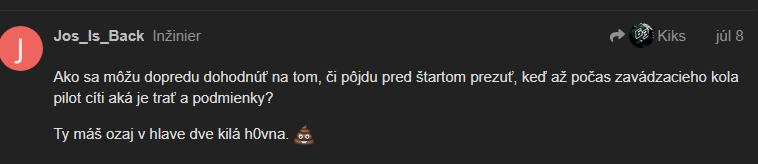 Takže se omlouvám, ale pokud se v konkretnim vlákně mihne současně tvůj nick, Max, případně Red Bull, tak k tvým komentářům přistupuji poněkud nevážně.