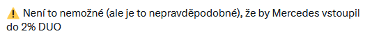 Puff má pravdu s hybridy, ty motory se osvědčili a je to částečně i technologie, co můžou přenést automobilky. Ale to co je v součanosti v F1 nikdy automobilky nevyužijou a zároveň to není důstojné F1