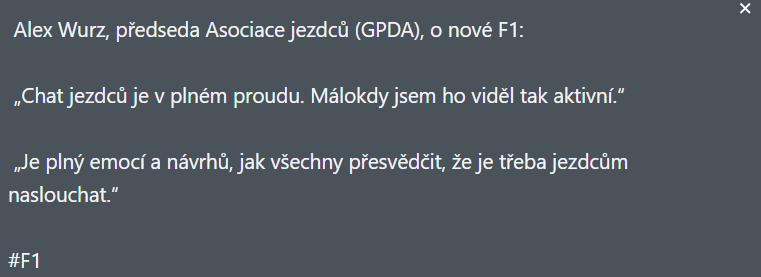 Puffe, ono stačí kdyby sis nastavil zrcadlo co si tu k FIA a RBR psal ty poslední dva roky. Sorry not sorry, ale tohle naprosto to stejný, zeptej se šulibrka proč se rozhodl s FIA protěžovat dva týmy na střídačku, nemyslím si, že je to prospěšný pro F1 a hlavně se to dohnalo do extrému, kde jsou nefuknční pravidla
