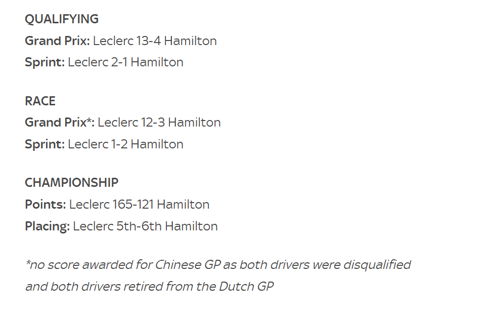 Lewis Hamilton mal na Veľkej cene Singapuru vykročené za ziskom minimálne šiesteho miesta. V závere si na čerstvejších mäkkých pneumatikách trúfal aj na Kimiho Antonelliho, ale zradili ho brzdy. Lewis si v následnej zúfalej snahe dostať sa do cieľa aspoň na siedmom mieste poriadne skracoval trať a komisári ho dodatočne potrestali, čím ho zosunuli v poradí na ôsme miesto za Fernanda Alonsa.