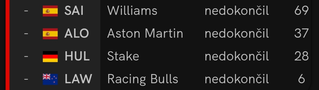 Obrázok s vypadnutými - preto lebo to Alonsov pretek nijako neovplyvnilo.