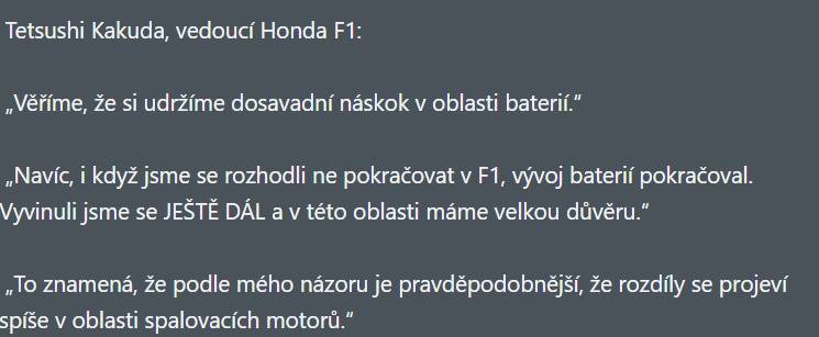 Nakoniec mozno RB nemusi plakat ze nema Hondu a teoreticky RBPT bude najvacsie prekvapenie a aj vdaka “Mercedes triku” budu mat 2-3 naj PU (podla Ferrari) a v tom pripade, ak neobetovali kvoli minulej sezone (vyvoj az do konca) az privela a odviedli dobru pracu, kludne mozu patrit do top3, max 4 timov, co by nebolo take zle, ako sa tak trochu ocakavalo.