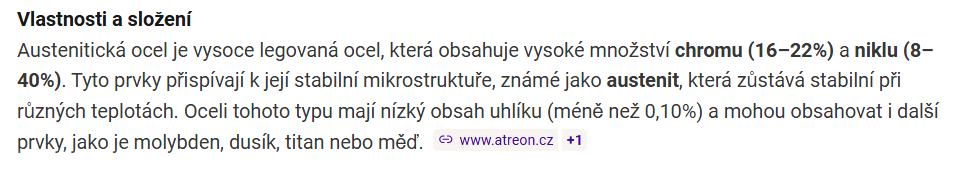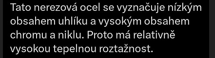Ještě se musím podívat co je ta austenitická ocel. Nic mi to neříká.