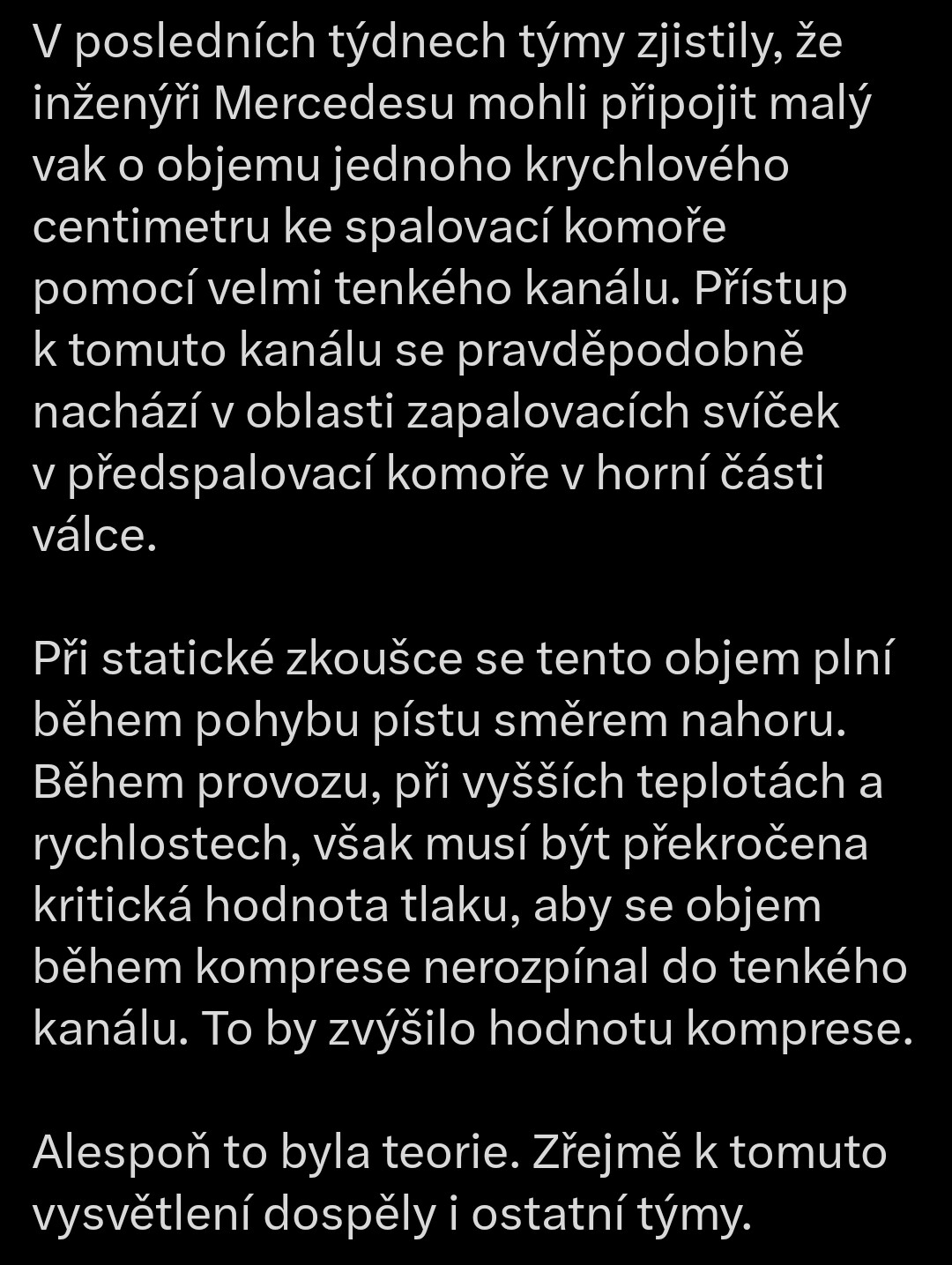 Je to rozhodne zaujímavé riešenie s tým uzatvárateľným kanálikom do ďalšej komory s objemom 1 cm3. To sa tu doteraz myslím nespomínalo. Pri statických testoch otvorený, počas prevádzky vplyvom teploty uzavretý.