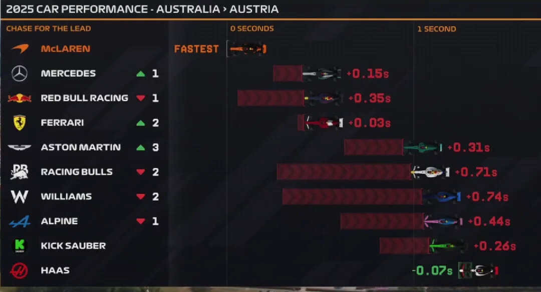 Urcite. Popieraci dominancie McLarenu od zaciatku sezony, pritom rovnaka tabulka v Rakusku vyzerala takto.