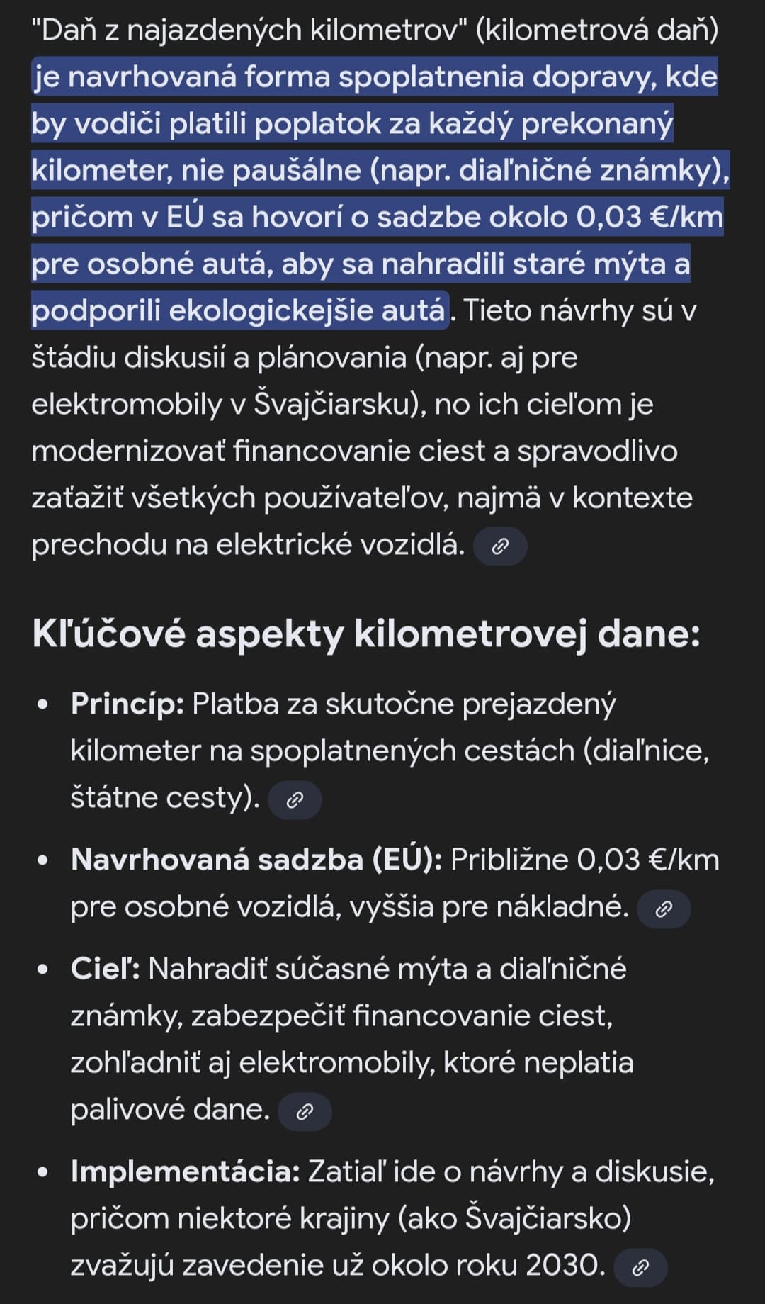 Diaľničná známka v Česku je viac ako 2x drahšia ako tá Švajčiarska(samozrejme ak sa nejedná o nejakú formu ekologického paliva). Vo Švajčiarsku tie 3€ na 100km ľudia zamietnu referendom v roku 2030, no a v našom východnom svete nemajú gule to zaviesť.