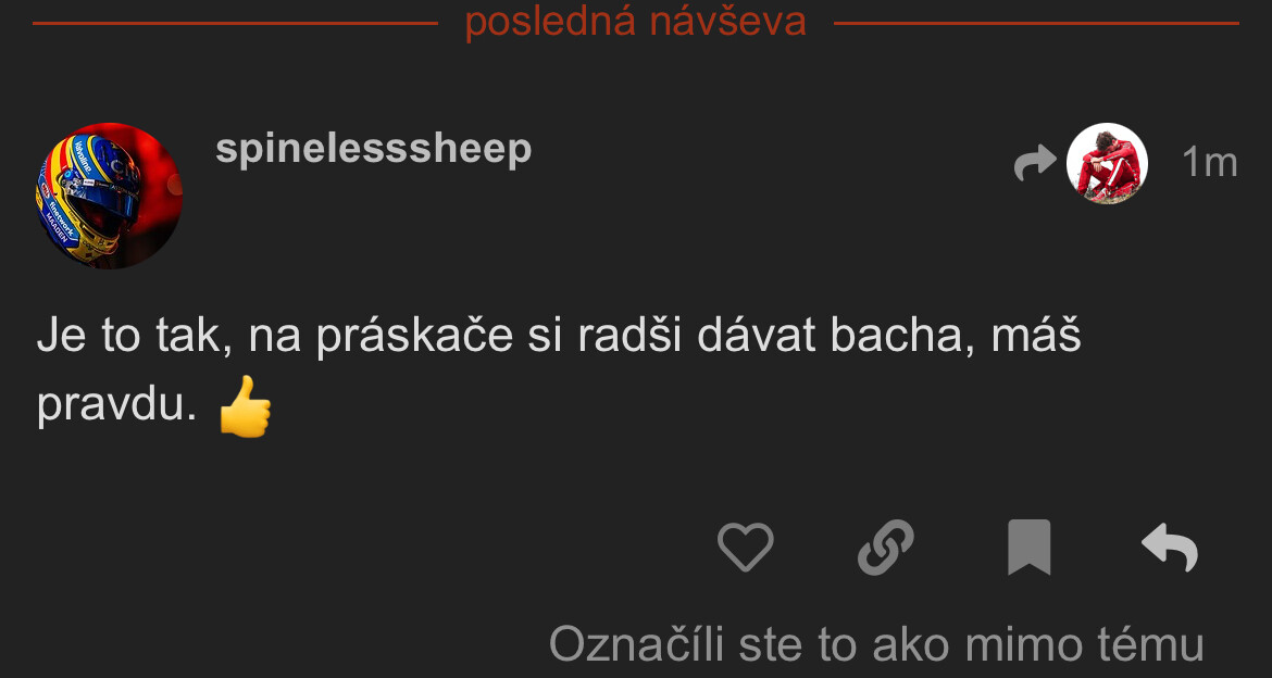On to začne a pak mě nahlasí že píšu mimo téma. To nevymyslíš.