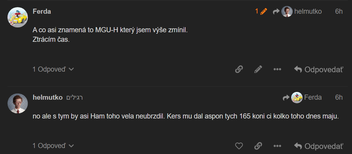 To jen Ty tady píšeš blbosti, že bez turba by si Hamík dál mohl brzdit MGU-K a vůbec jsi netušil, že bez turba by se musel spalovák okamžitě vypnout, aby nedošlo k poškození motoru.