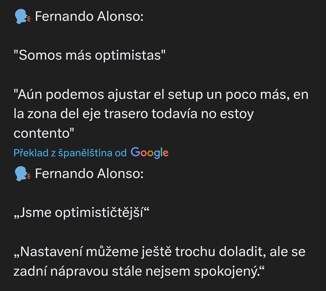 . Celkem jim to dnes nejezdilo úplně špatně. Lando podle mě hlásil po výjezdu problémy/možné poškození, měl při měřeném kole velkou ztrátu v prvním sektoru, ale do zítřka je času… Jsou nudnější tréninky