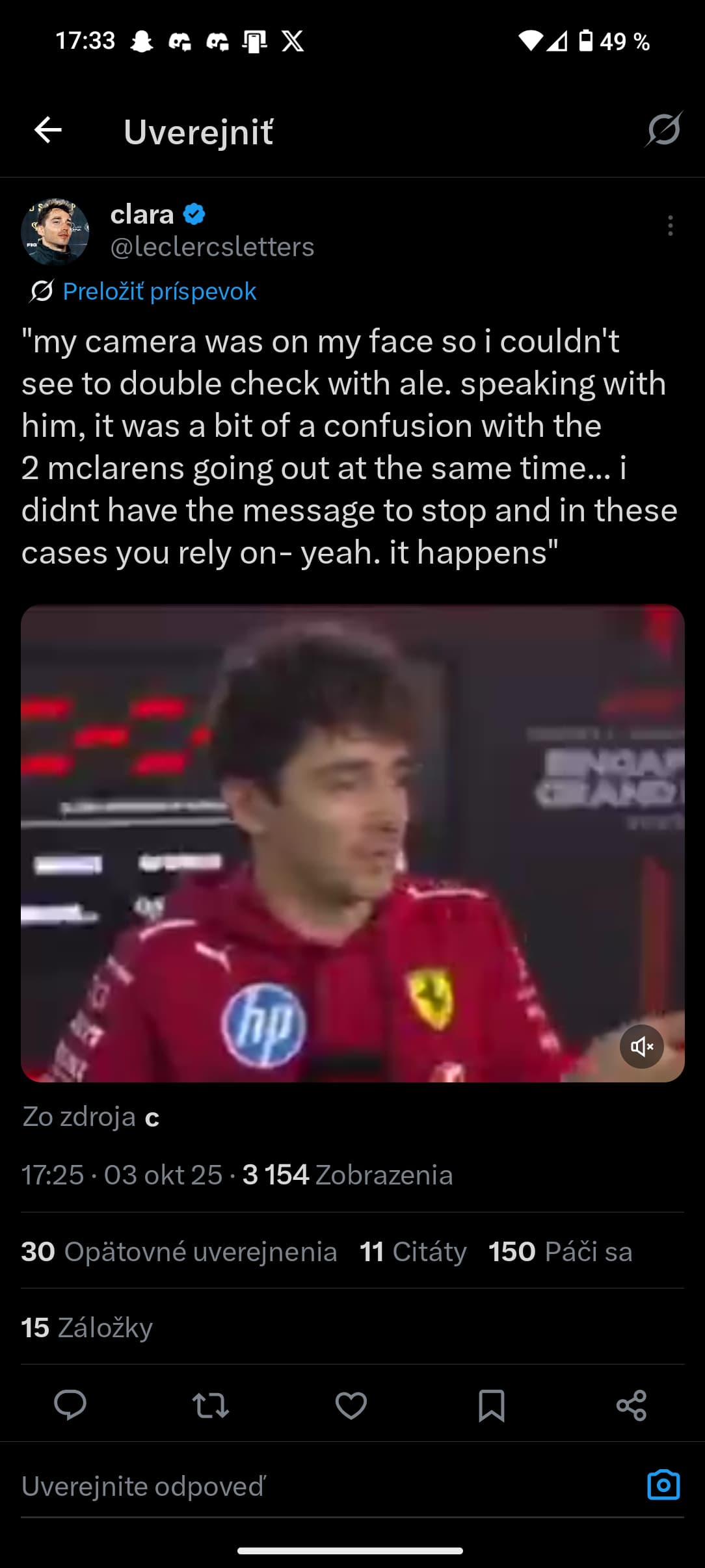 Ten ujo čo dáva Charlesovi signál sa kam pozerá? Kde stojí? Je otočený chrbtom k pitlane a ukáže Charlesovi: “Poď možno nikto nejde. A možno niekto ide ale ja to nevidím, lebo som otočený chrbtom a nepozerám sa tam, kam sa mám pozerať.” A potom čo sa zrazia si v pohode odkráča preč akoby sa nič nestalo.