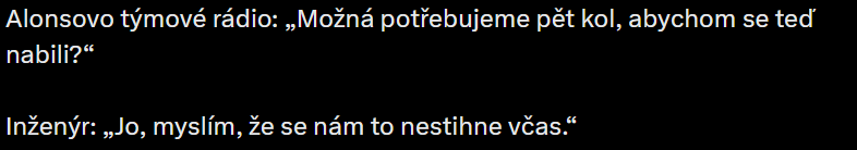 Cadillac na to má právo, Alpine je v situaci jaké je a uvidíme, jaký tam bude další vývoj. Na druhou stranu, vždycky bude někdo poslední. Teď pěkně Oscar (Lando toho zatím moc nenajezdil), Ferrari se taky ukazuje dobře.