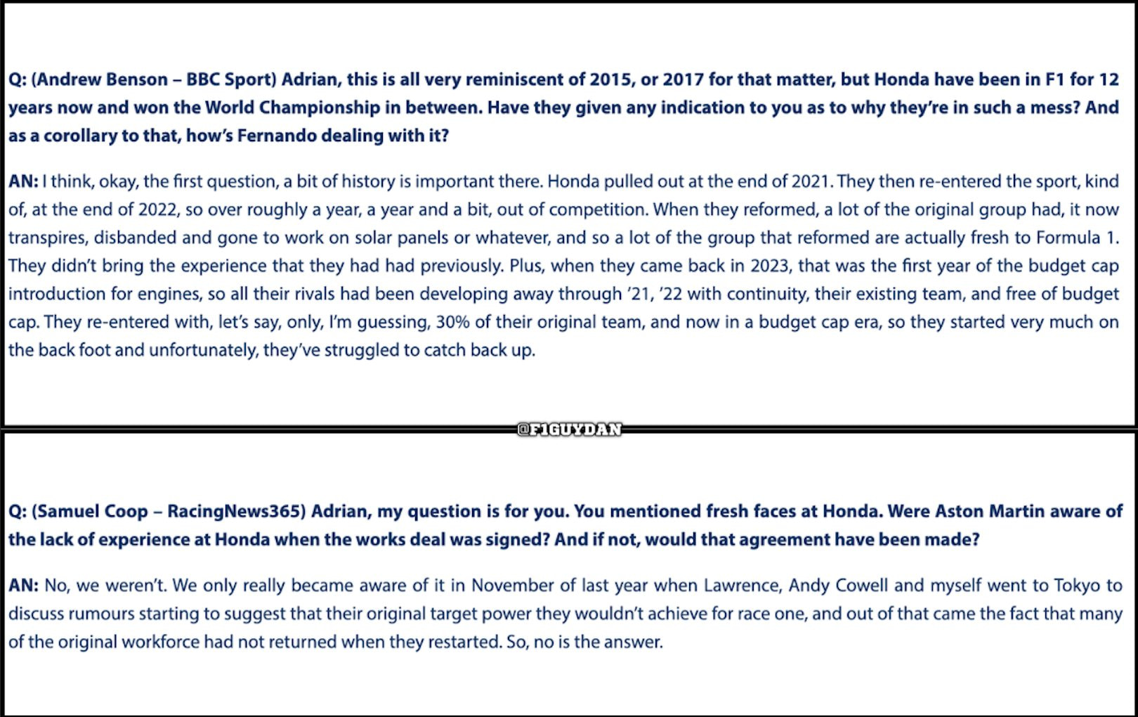 Aston je viditelně žďorb a to přece není chyba Hondy, ale na straně Adriana a jeho vývojovému týmu.