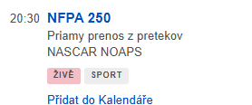 malo by to ist tu o 19:30 FS1 NASCAR | FSL (pozor na vyskakovacie okna)