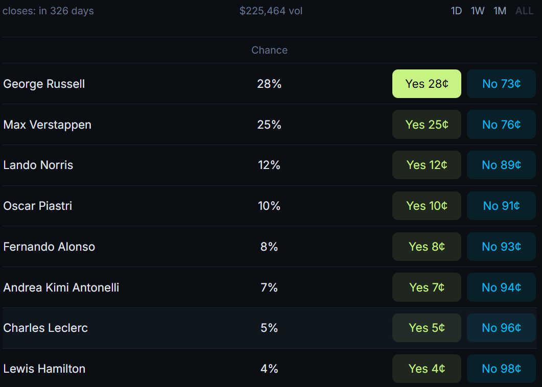 Leclerc je veľmi podcenený (aj na klasických stávkových) vzhľadom k tomu, že Ferrari je veľká neznáma, ale na prepadák to nevyzerá a Verstappen vzhľadom na RBPT je trošku precenený a neoplatí sa v takomto kurze.