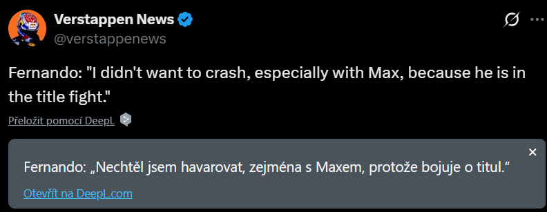 Hele, hele!! Mimochodem tady je Verstappen, ktery to udrzel na obrubaku. Ja jen vim, jak ho mas rad, tak ti chci zlepsit vecer.