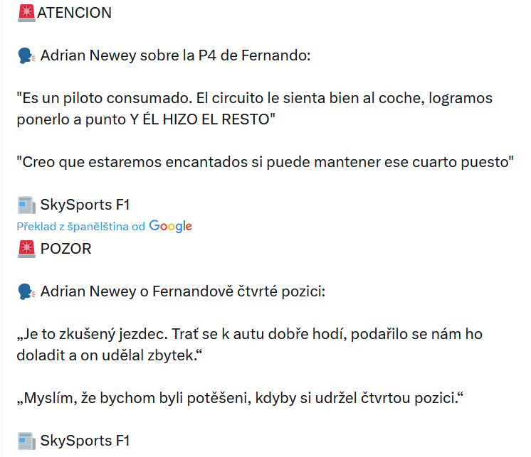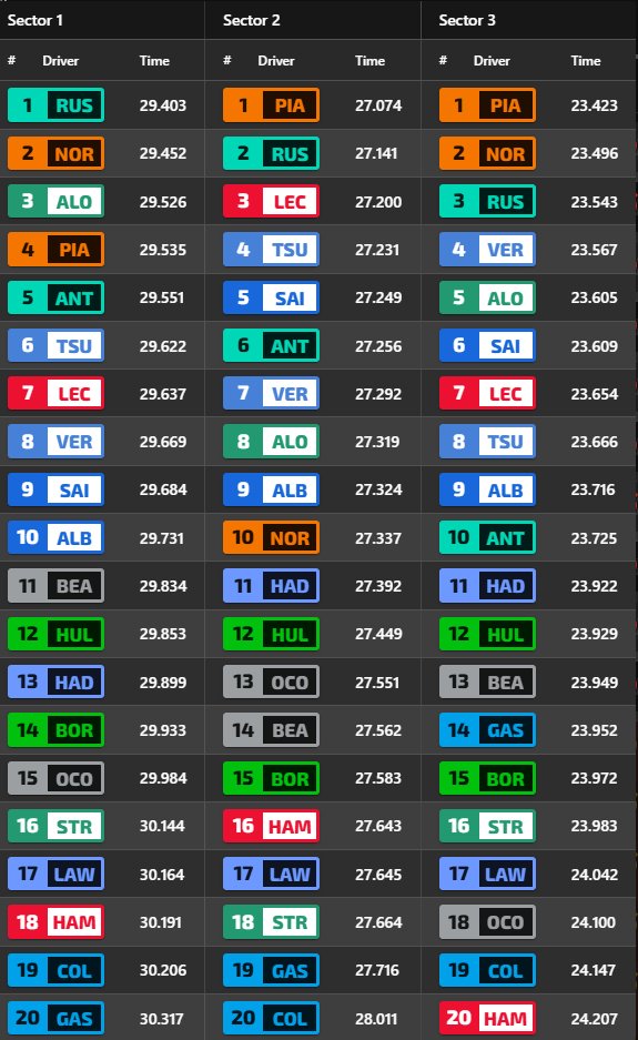 Tak gratulace Yukimu. Paradní kvalda. Max nic moc tedy. Inu to se nedá nic dělat. Šance na titul se vzdalují. Naštěstí zaváhal i Lando a zdá se že Oscar je zpět, což by mohla být pro Maxe šance. Nevím zda bude pro Maxe trest. Každopádně Maxovo auto nevypadalo dobře. Zdá se, že to u RBR možná trošku přehnali, ale Yuki jel dobře, takže nevím.