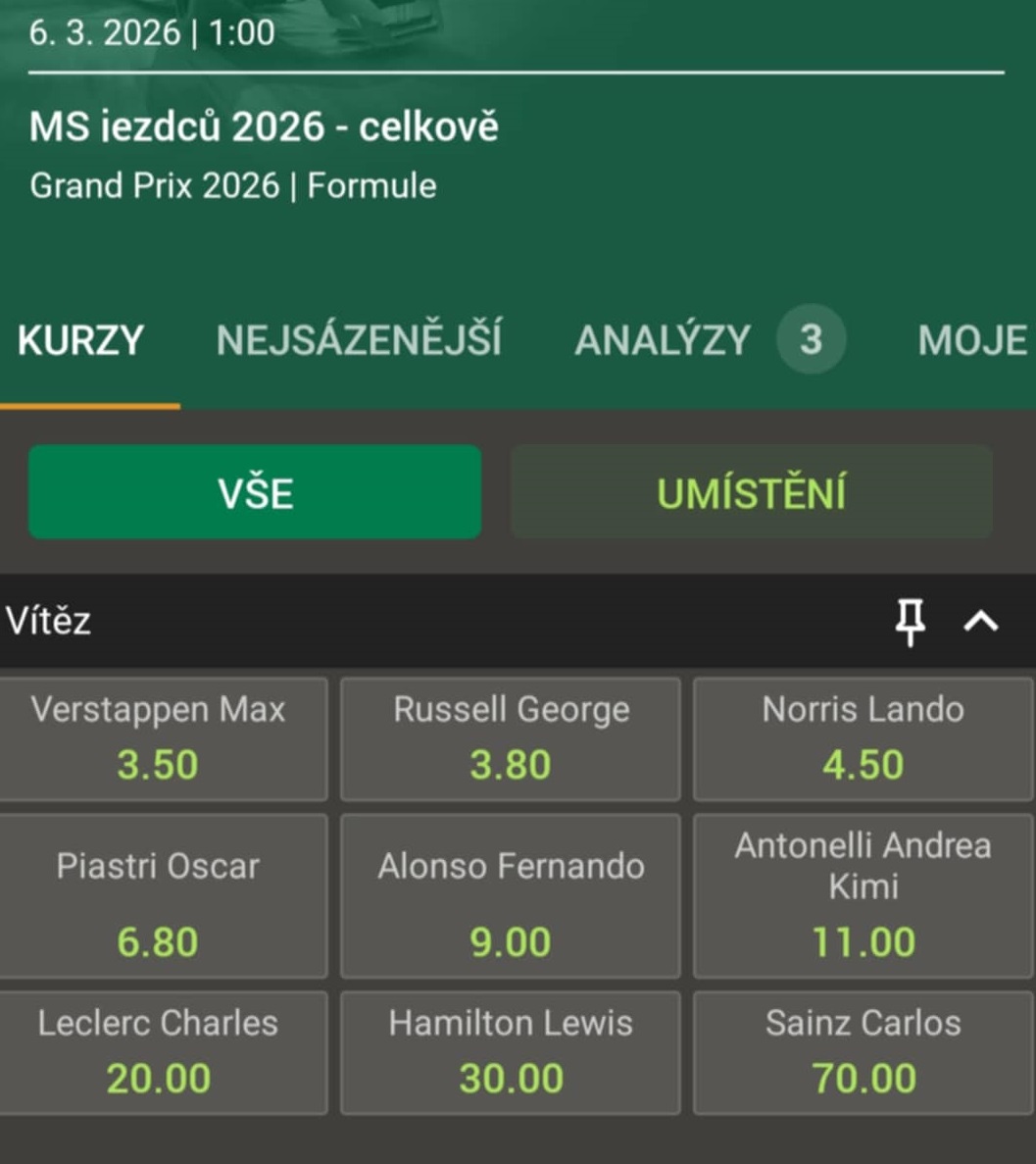 Moc nechápu, proč třeba na Sainze spadl kurz, když odjeli 0 kol.