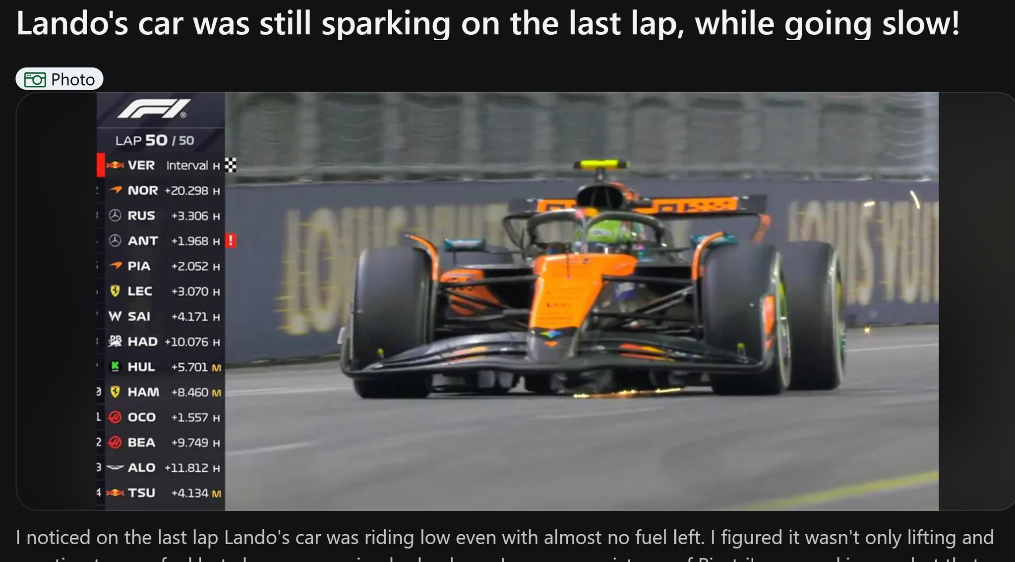 Počkej, takže Norris neměl ani palivo ani nesplňoval desku a vyřeší to jeden trest?