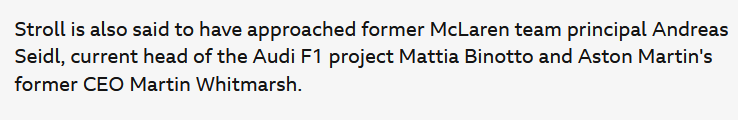 to nie je oficialne ze spôsobil jeho odchod, za prve sú to len nepotvrdené nepodložené konšpiračné teórie, za druhé ak sú náhodou pravdivé, tak to newey určite nedopustí aby prišiel