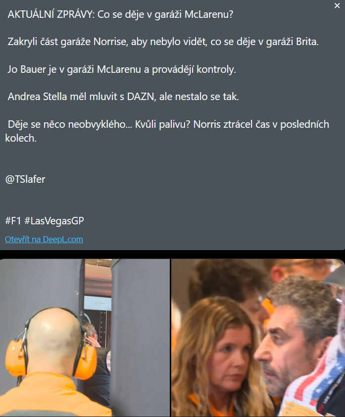 Marko postláčal nejaký zlý gombík a vypustil omylom Norrisovi palivo. Alebo FIA nachytala McL na ten ich trik z brzdami. Prečo by išla celá delegácia kontrolovať monopost a zakryli garáž, keby zobrali vzorku paliva??? Však to sa bežne robí u každého auta.