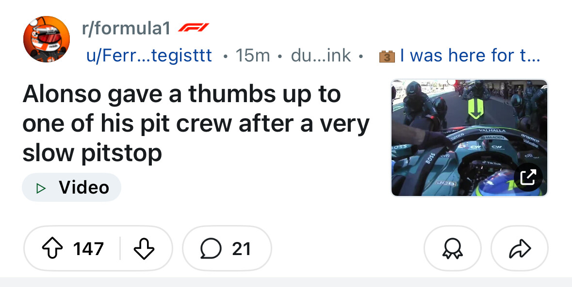 Alonso s poruchou motoru na konci pole je hvězda tohodle fora, wow.