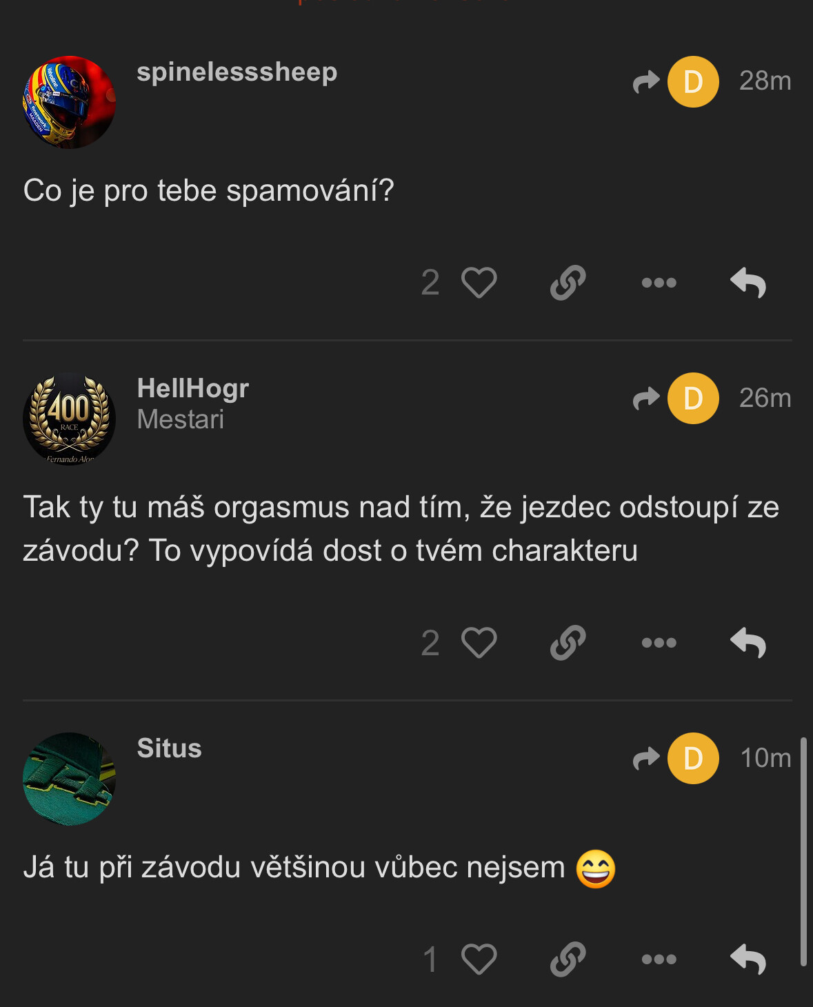 Tak ty tu máš orgasmus nad tím, že jezdec odstoupí ze závodu? To vypovídá dost o tvém charakteru