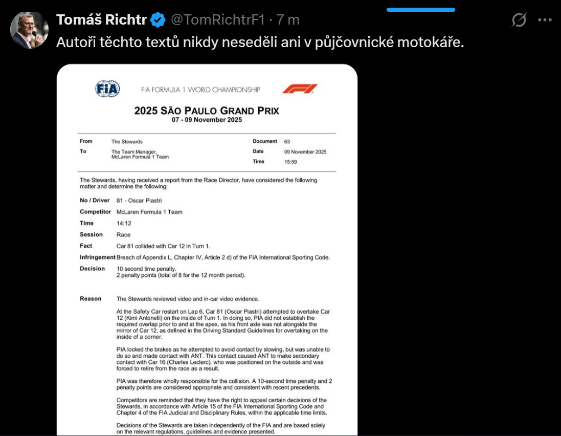 Keby islo o velku a 100% chybu Oscara ci nebodaj umysel, tak ako-tak pochopim, ale robit z komara somara a este aj neslusne, to sa mi nepacilo, tak som sa ozval a to som netusil, co neskor povie Palmer, Charles, divaci atd.