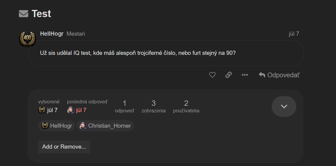 Jaky perma ban? Na fotce, co jsem poslal, tak je napsano, ze je tam 1 odpoved. Pokud jsem ti poslal fotku, tak se to pocita jako jedna odpoved. Mas nejaky vetsi problem s vnimanim textu? A nebo ti nedela dobre, ze je forum v jinem jazyce? Ne ze by ti sel i ten tvuj rodnej teda…