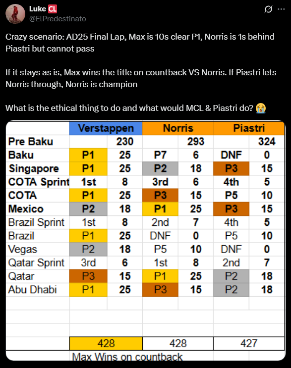 Piastriho nějak nekritizuji, opakovaně zdůrazňuji, že jede teprve svou třetí sezónu a má výbornou křivku učení. Ale o to nejpříjemnější je to pro Norrise, má problém s pilotem, který má podstatně menší zkušenost. Zrovna u tebe mě shovívavost vůči LN při všech jeho chybách vzhledem k tvým zpravidla přísným postojům vůči pilotům překvapuje. Ale slovo “suverenita” jsem vysvětloval, takže vypíchnu jen to, že tím nemyslím bezchybnost nebo superioritu závod co závod, ale schopnost opakovaně - ne nutně po sobě - zamést se zbytkem světa. Když mám den, nemáte nárok. A zrovna tohle Mika uměl. Oponovat bys mi mohl spíše Rosbergem, jehož závěr sezóny 16 mě z tohoto hlediska dráždil, ale sedm GP v řadě na přelomu 15/16 mu zase nějaké body vrací. A Norris je zatím někde pod Rosbergem a/ale nad Irvinem. Anebo řekněme level Sainz. Který má pořádnou houževnatost, ale jako mistra světa si ho neumím představit.