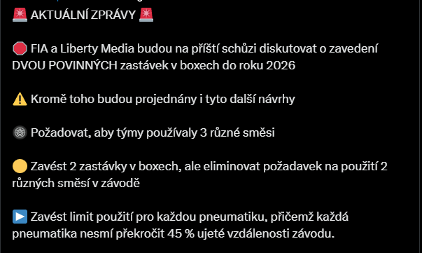 Mně by se líbilo, kdyby týmy mohly využívat všech 6 směsí, a každý by před víkendem vybral, které chce. To by mohly být krásné strategické bitvy.