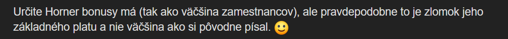Je velmi nepravdepodobne, ze by Hornerova premie boli vacsou castou jeho prijmu ako zakladny plat.