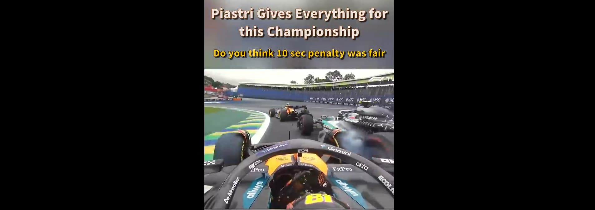 Já v tom vidím důkaz že Piastri byl plně na vnitřku a Kimi si najel do jeho prostoru.