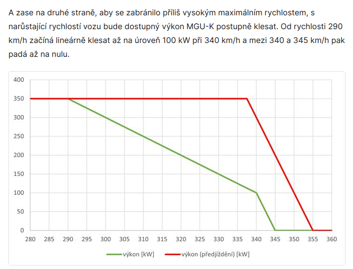 mne sa ten graf nezda - pri rychlosti 300km/h bude ma predbiehajuci 50kW vykonu extra a pri rychlosti 310 bude mat 100kW vykonu extra. Teda neviem akemu extra vykonu odpovedalo sklopene DRS ale toto vyzera byt ako slusna palka. Tie auta asi budu fakt ku koncu rovinky spomalovat.