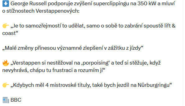 No Mercedes navrhl řešení místo clippingu mít reálně jen super clipping a 350kW, prej to bude nejlepší pro závodění jezdit na rovinkách 200km/h místo 260km/h a víc