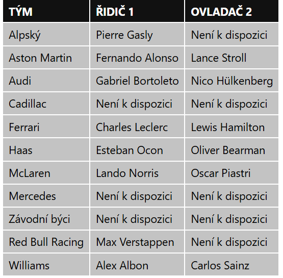 O Paulovi Aronovi se začalo mluvit v souvislosti s možným vstupem do Alpine, proč ne. Jinak to asi bude celé bez překvapení, nevěřím, že by Cadillac přivedl nějakou bombu - Hertu nebo Paloua (ten aspoň asi má superlicenci, když byl rezervním jezdcem McLarenu, ne?). Pérez se zdá být jasný. Júki by se musel teď chytit, jinak prostě skončí, i když je mi ho líto. Vlastně jsem se všemi spekulacemi v souladu .