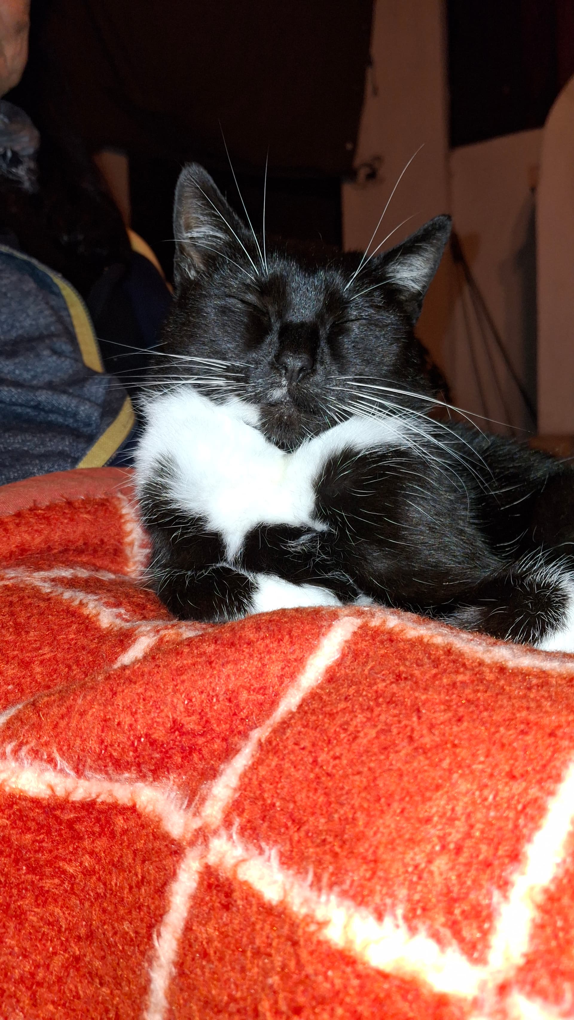 Je nádherná a má skvělou povahu. Je to divoká kočka domácí, která se k nám přisomrovala. Měla velkou kýlu a když byla březí, tak se ji ještě více rozjela. Kamarádka, která bydlí u stodoly, kde hrajeme pinčus ji odvezla k veterináři, který ji vykastroval a zašil kýlu. Vlastně ji zachránil život. Operace stála 4 000, což je za cizí kočku docela dost, ale každý pátek nám dělá radost svou přítomností a to je docela slušná odměna.