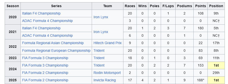 A keď sa na to pozrieš. Je síce konzistetný, ale v juniorke 5 výhier za 5 rokov je málo. Tam to musíš sypať. Viac ich zaujíma raw pace ako konzistentnosť