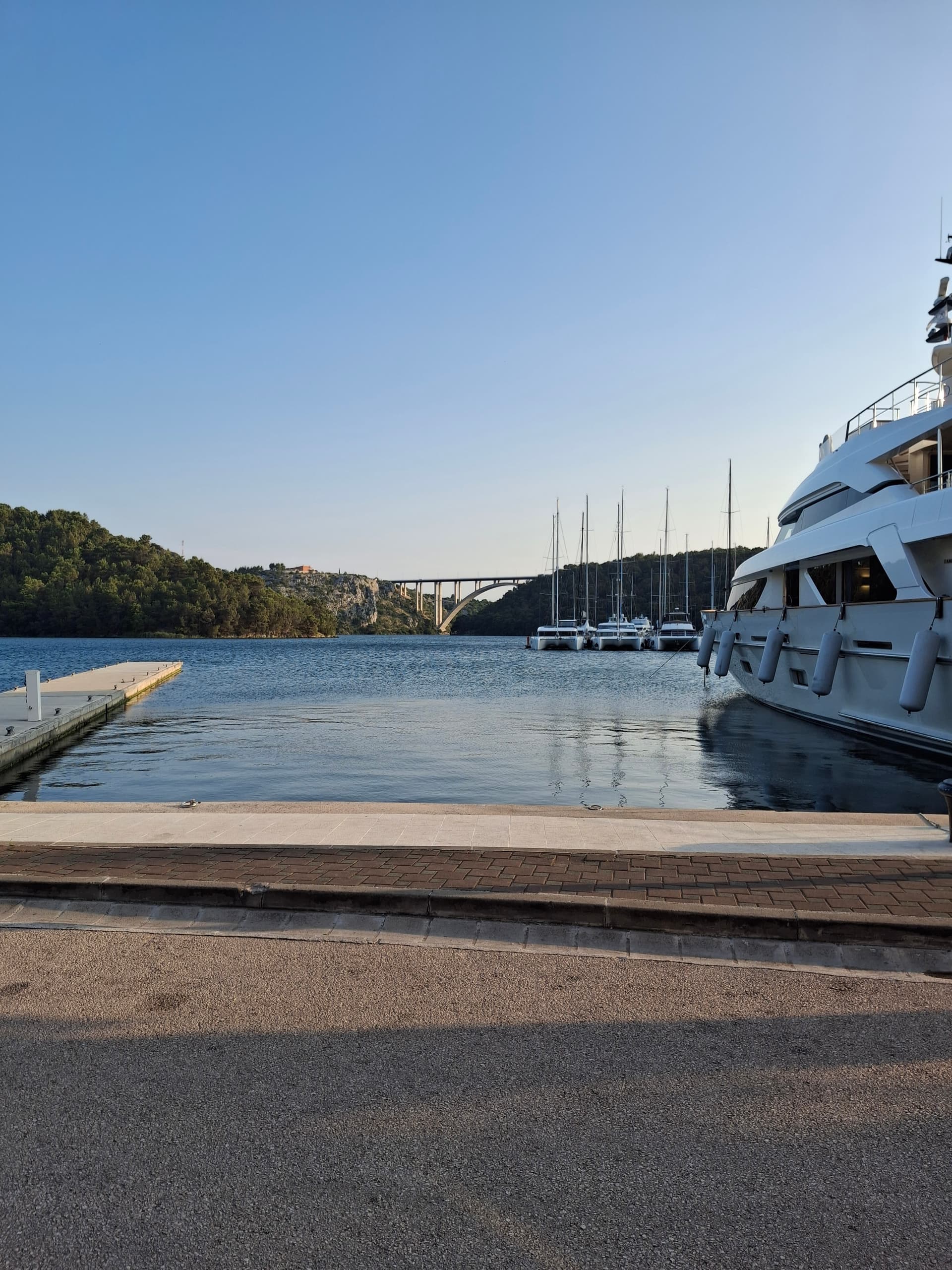 Právě jsme zakotvili v městečku Skradin,takže jsme dnes zvládli Jadran, Proklanské jezero a řeku Krka v jednom dni.