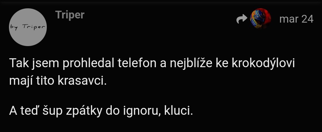 Mám vás v ignoru asi 15 měsíců, je mi tady fajn a tak to i zůstane.