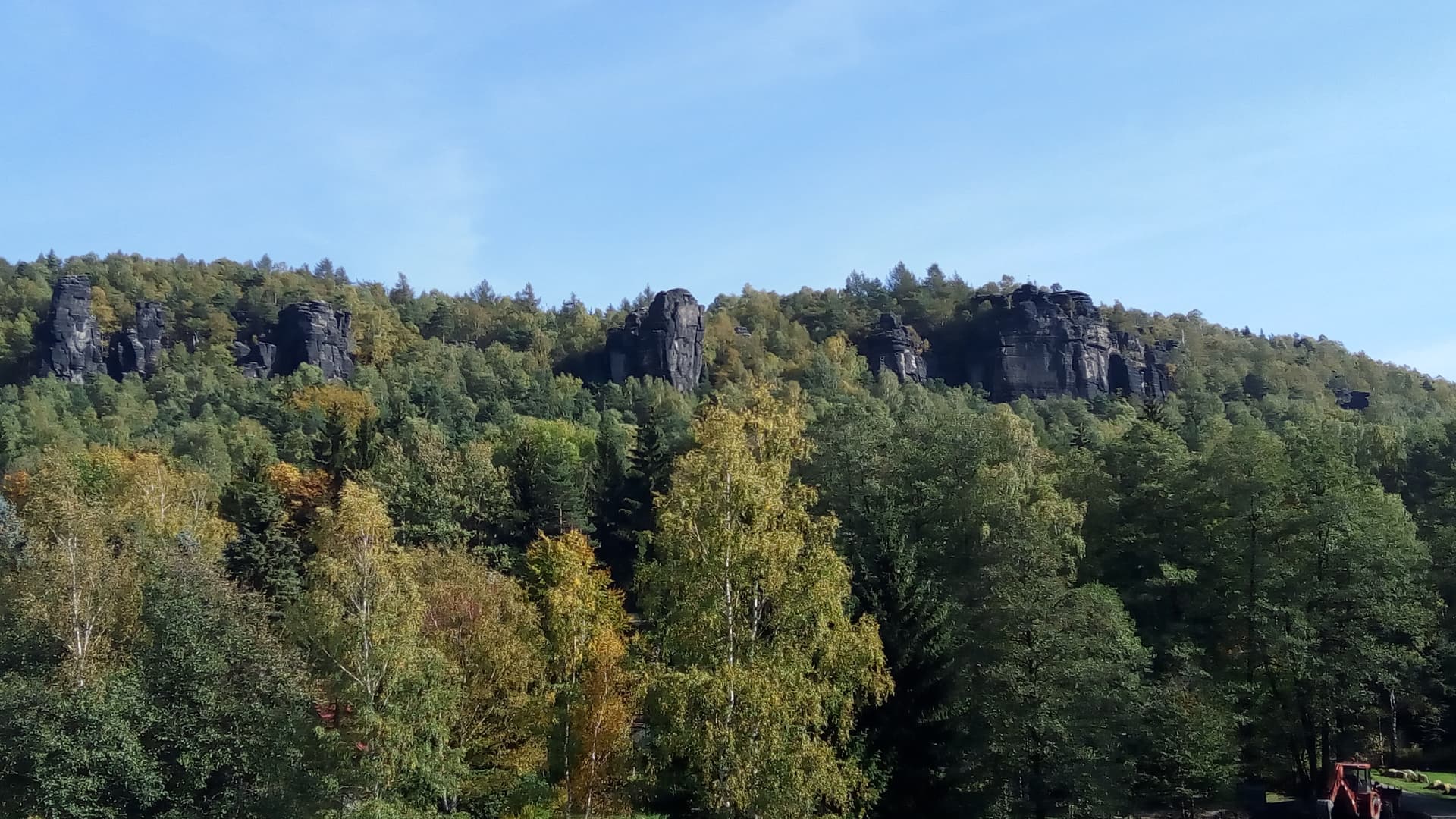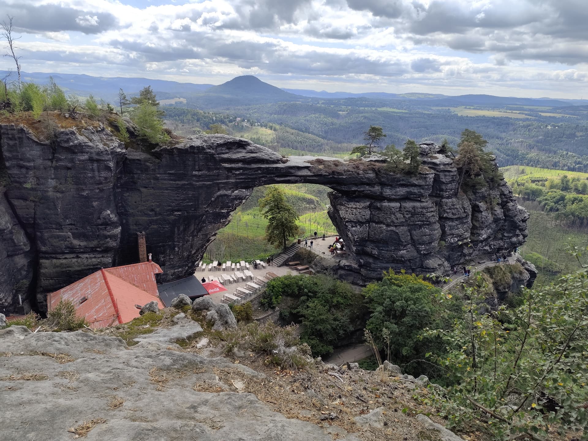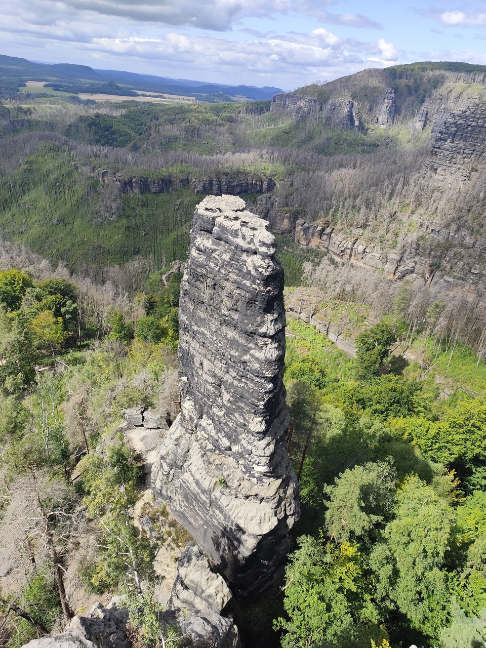 Měli jsme před nějakým tím rokem v oblasti teambuilding kousek od Děčínského Sněžníku, to je taky tam někde, ne? Na skály jsme se koukali z hotelu v Ostrově/Tisé a pak jsme si vyšlápli nahoru.