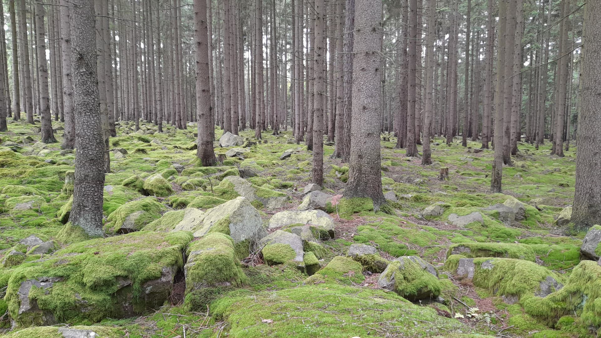 Zajímavý lesík. Je na něm znát, že se někdo o něj staral, když nemá větve až k zemi.