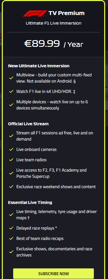 Jo tak, když na tohle já jsem líná. Normálně koukám na televizi a o F1TV se dělíme dva. Oni si vždycky jednou za rok strhnou, co ode mě chtějí, a já jsem s tím ok. S takovými lidmi, co si šlapou po štěstí, je to potom těžké