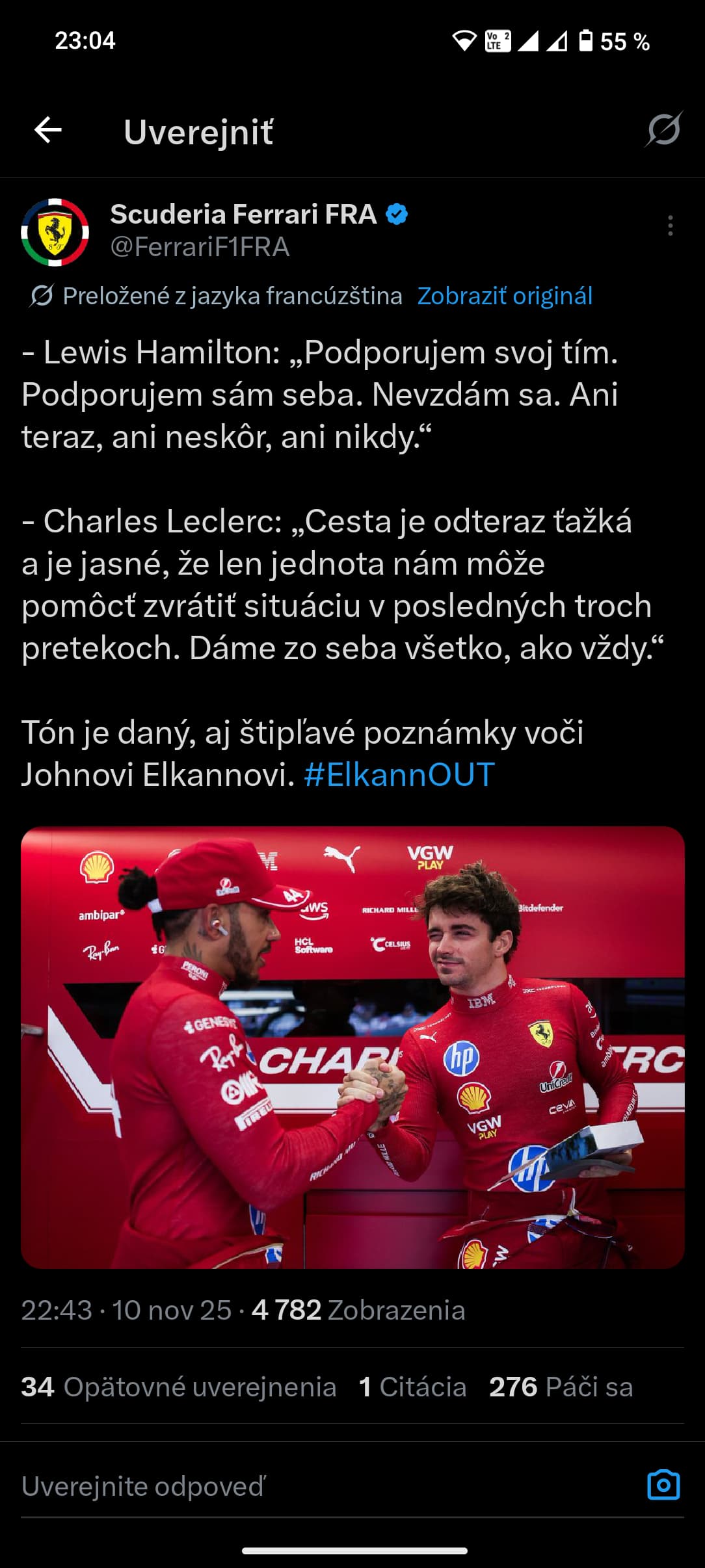 Obidvaja piloti Ferrari docela ostro reagujú na Elkannove slová. Vpodstate ho týmito vyhláseniami večer totálne zosmiešnili